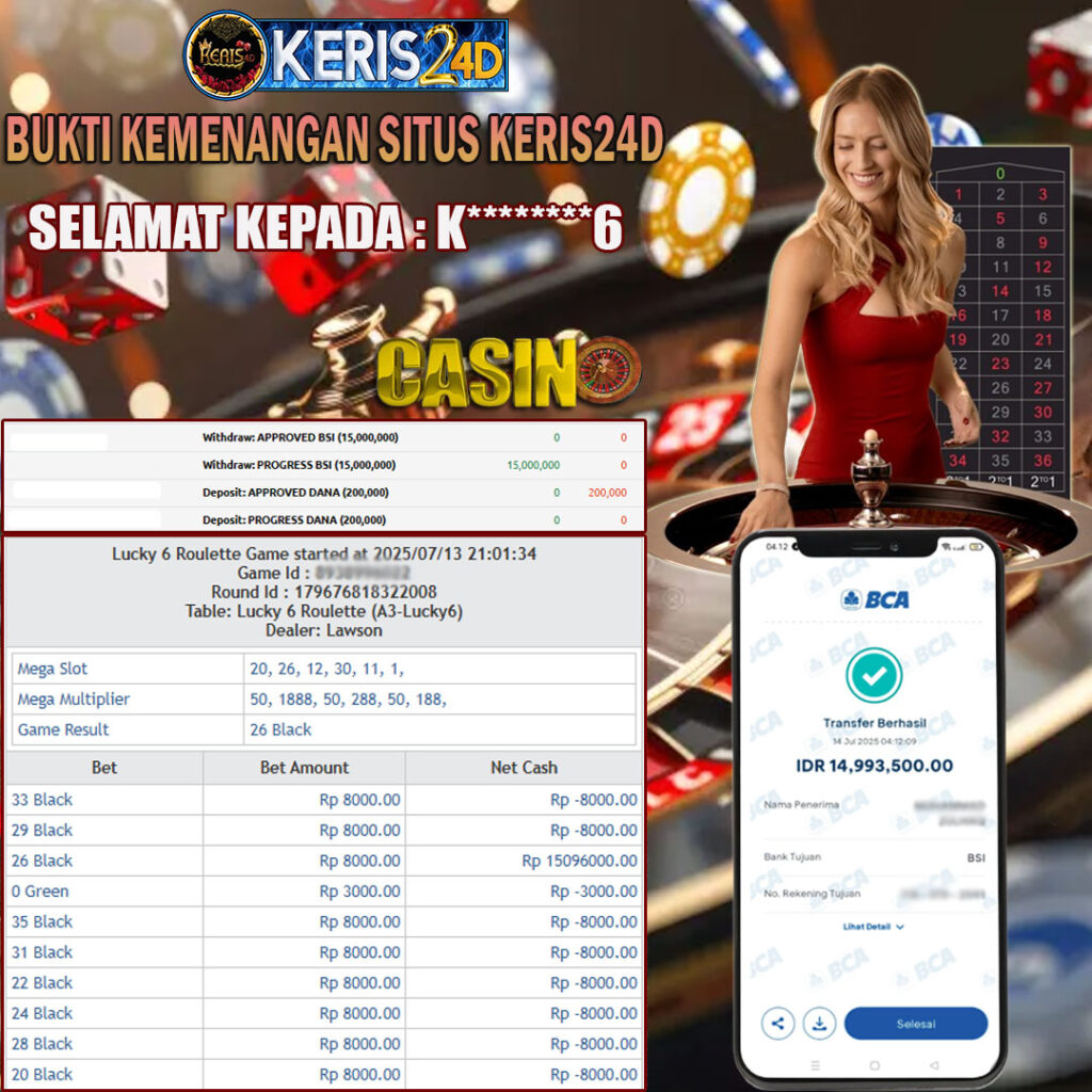 Setiap hari, member KERIS24D berhasil meraih jackpot besar dari berbagai provider slot ternama yang kami sediakan, seperti Pragmatic Play, Habanero, PG Soft, dan masih banyak lagi. Kami secara rutin menampilkan bukti screenshot atau rekapan kemenangan yang berhasil diraih, mulai dari kemenangan ratusan ribu hingga puluhan juta rupiah. Semua slip kemenangan ini kami hadirkan untuk membuktikan bahwa di KERIS24D, peluang menang itu nyata.