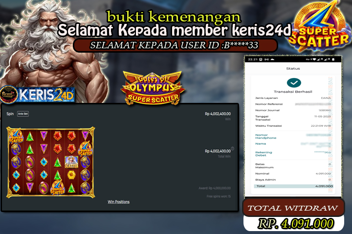 Satu lagi Bukti JP dan Pembarayan Sah Dan Dapat Dipertanggung Jawabkan, WD Berapapun Pasti Dibayar Lunas Hanya di Situs KERIS24D. Hati Hati Kepada Pihak Pihak Yang Mengatas namakan Pihak KERIS24D Untuk Melakukan Penipuan.