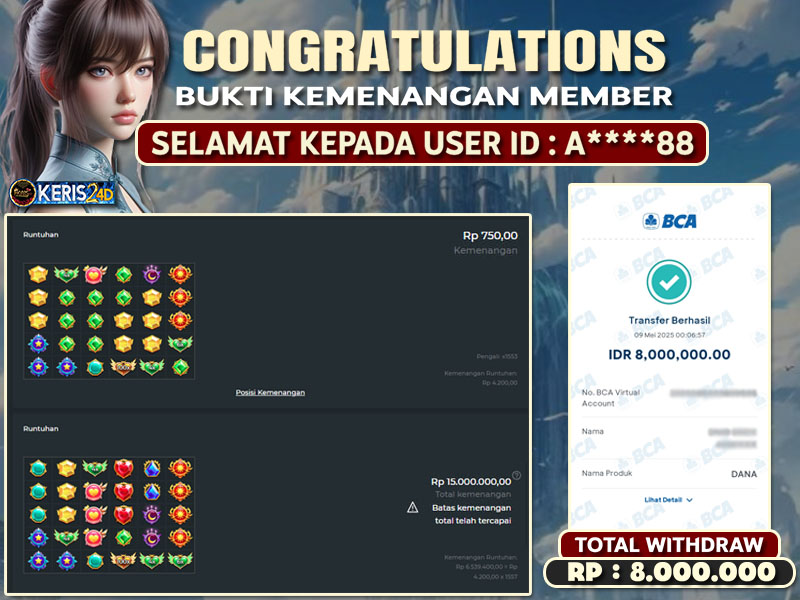 TOTAL KEMENANGAN : Rp 8.000.000 ,-