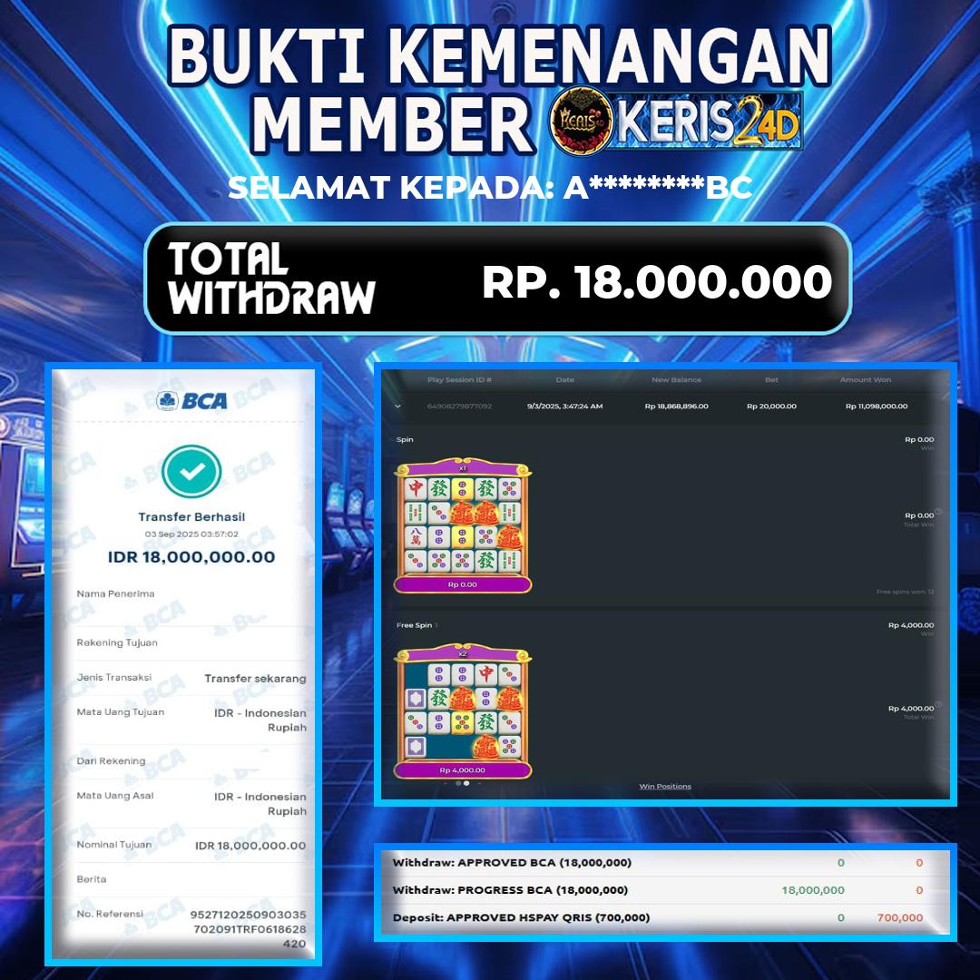 TOTAL KEMENANGAN : Rp 18.000.000,-